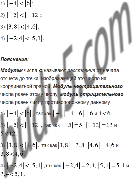 Сравните модули чисел: