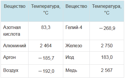 Расположите в таблице указанные вещества в порядке возрастания температур их кипения.