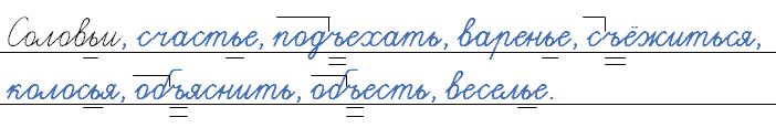 Соловьи, счастье, объехать, варенье, съёжиться, колосья, объяснение, съесть, веселье.