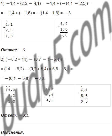1,4 прибавить разность чисел 2,5 и 4,1;
