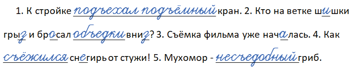 Слова для справок: нес_едобный, об_едки, под_ёмный, с_ёмка, под_ехал, с_ёжился.