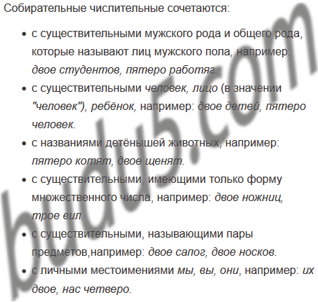 Проанализируйте таблицу и расскажите об особенностях сочетаемости собирательных числительных. Приведите свои примеры.