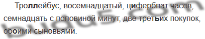 Тро(л, лл)ейбус, восем(?)надцатый, ц..ферблат часов, сем(?)надцать с половиной минут, две трет(?)их покупок, об..ими сыновьями.