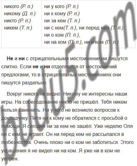 Определите падеж отрицательных местоимений. Скажите, как употребляются отрицательные местоимения с предлогами. Составьте с ними предложения.