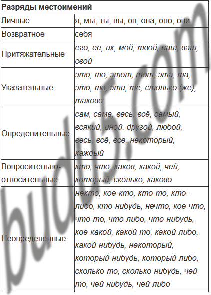 Бегло просмотрите содержание § 59—67. Представьте материал о разрядах местоимений в виде графического объекта. Приведите примеры местоимений каждого разряда.