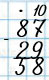 Пишу: 83 - 29. В уменьшаемом не хватает единиц, поэтому занимаю 1 десяток и ставлю точку.