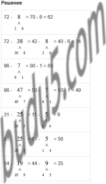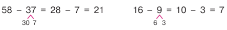 б) Чтобы вычесть двузначные числа по частям с переходом через разряд можно представить вычитаемое в виде разрядных слагаемых и сначала вычесть десятки, а затем единицы.