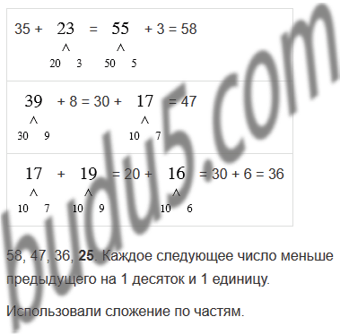 | 35 + 23 | 39 + 8 | 17 + 19 |