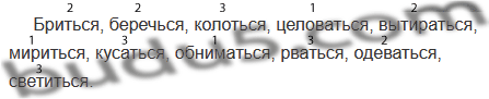 • С помощью цифр над словом обозначьте, к какой из трёх групп относится каждый из возвратных глаголов: