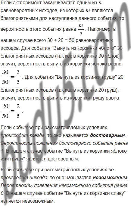 В корзинке лежат 30 яблок и 20 груш. Какова вероятность вынуть из корзинки яблоко? грушу? Сливу? Яблоко или грушу?