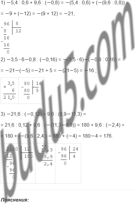 3) 21,6 : (0,12) + 9,6 : (8,911,3).