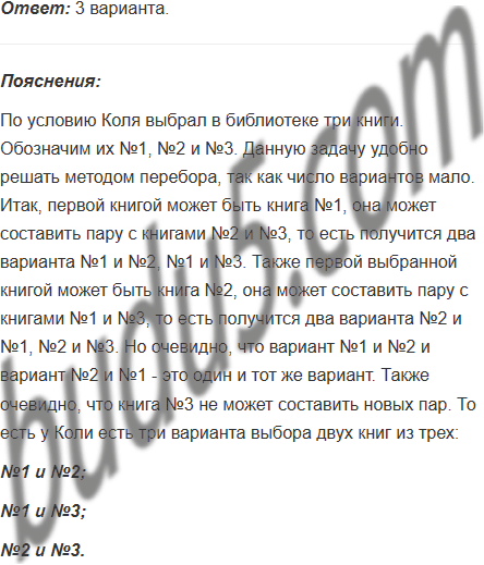 Коля выбрал в библиотеке три книги. Однако домой он может взять только две из них. Сколько вариантов выбора двух книг есть у Коли?