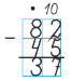 Пишу: 82 - 45. В уменьшаемом не хватает единиц, поэтому занимаю 1 десяток и ставлю точку.