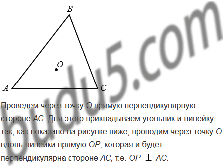 Начертите остроугольный треугольник и отметьте внутри него точку. Проведите через эту точку прямые, перпендикулярные сторонам треугольника.