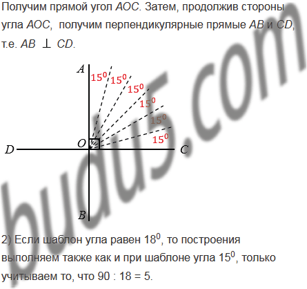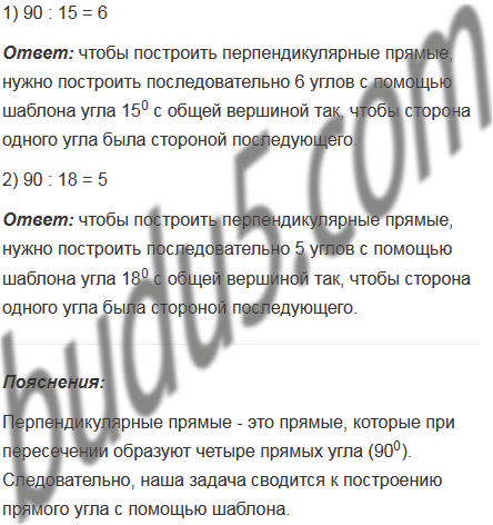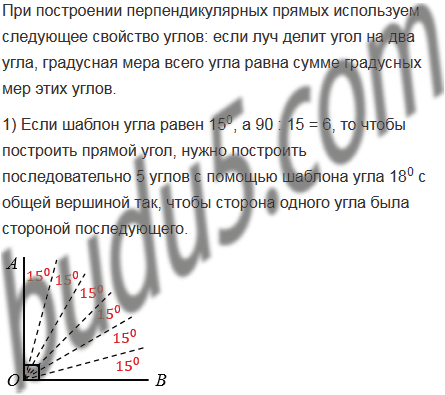 Как построить перпендикулярные прямые, пользуясь шаблоном угла, который равен: 1) 150; 2) 180?