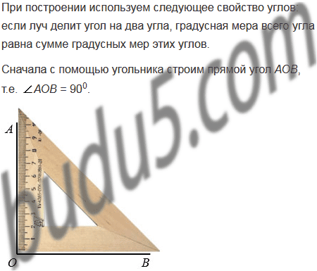 Пользуясь угольником и шаблоном угла 200, постройте угол, градусная мера которого 100.