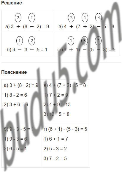 4. Запиши выражения в тетради, расставляя скобки по заданной программе действий. Найди значения этих выражений.
