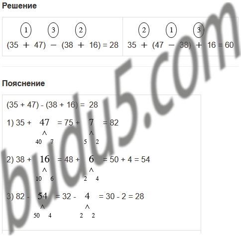 | б) 93 + (12 + 7) - 35 | д) (а + b) - (c + d) |
