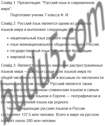 Используя материалы параграфа, составьте выступление в виде презентации на тему «Русский язык в современном мире».