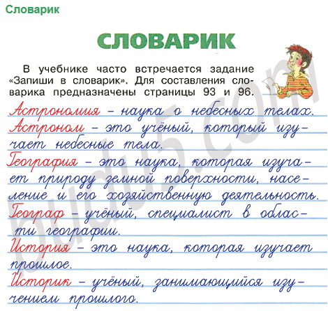 В учебнике часто встречается задание "Запиши в словарик". Для составления словарика предназначены страницы 93 и 96.