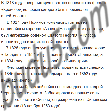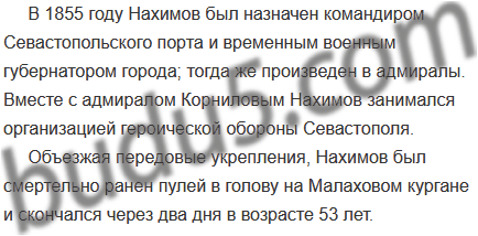 3. Пользуясь справочной литературой, а также источниками Интернета, подготовьте небольшое сообщение об адмирале Нахимове.
