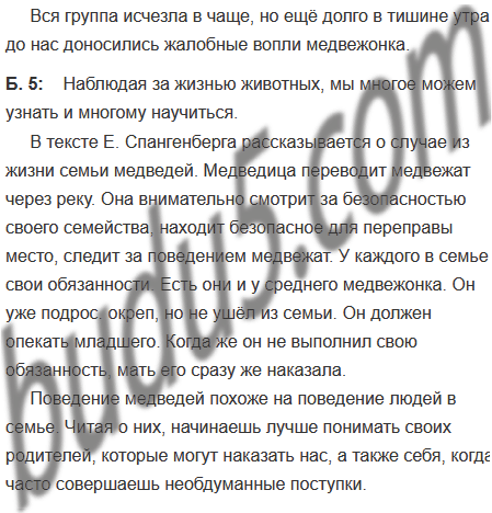 | 5. Составьте план текста, выпишите ключевые слова и напишите подробное изложение. | 5. Напишите небольшое сочинение на тему «Наблюдая за животными, лучше понимаешь себя». Включите в сочинение случай, описанный в прочитанном тексте. |
