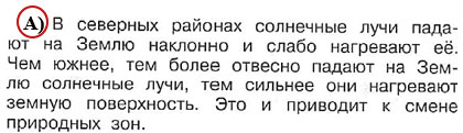 А) В северных районах солнечные лучи падают на Землю наклонно и слабо нагревают её. Чем южнее, тем более отвесно падают на Землю солнечные лучи, тем сильнее они нагревают солнечную поверхность. Это и приводит к смене природных зон.