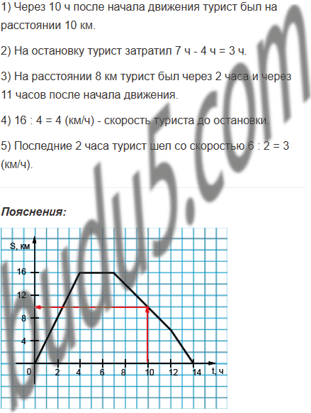 1) На каком расстоянии от дома был турист через 10 ч после начала движения?