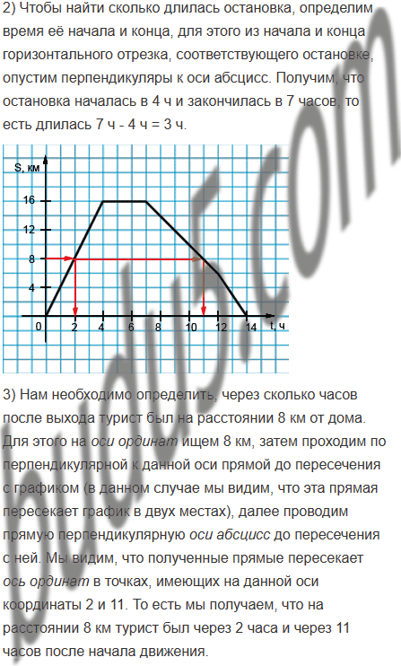 3) Через сколько часов после выхода турист был на расстоянии 8 км от дома?