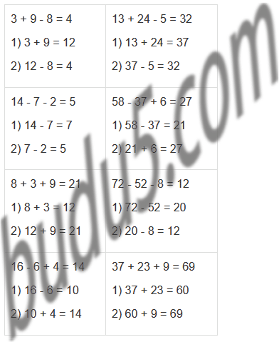 | 3 + 9 - 8 | 13 + 24 - 5 | 46 + 7 |