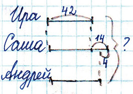 6. На тренировке по баскетболу Ира сделала 42 броска по кольцу, Саша - на 14 бросков больше, чем Ира, а Андрей - на 4 броска меньше, чем Саша. Сколько всего бросков по кольцу сделали Ира, Саша и Андрей вместе?