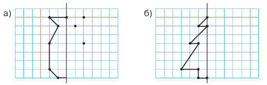 10. Перенеси в тетрадь фигуру по клеточкам и дорисуй её вторую "зеркальную" половину.