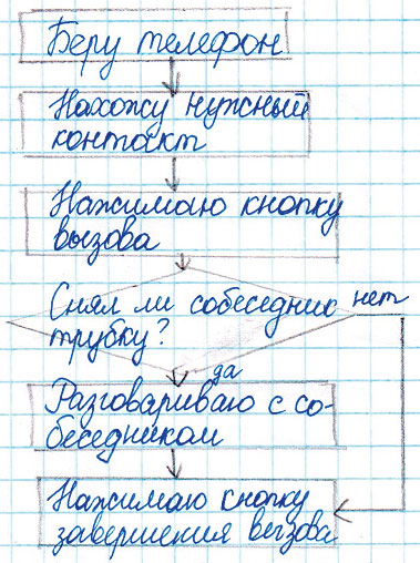 10. Саша хочет позвонить по телефону Коле. Верно ли задаёт последовательность действий написанная им программа?