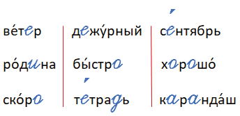 Прочитайте. Вставьте в слова пропущенные буквы. Обозначьте ударение.