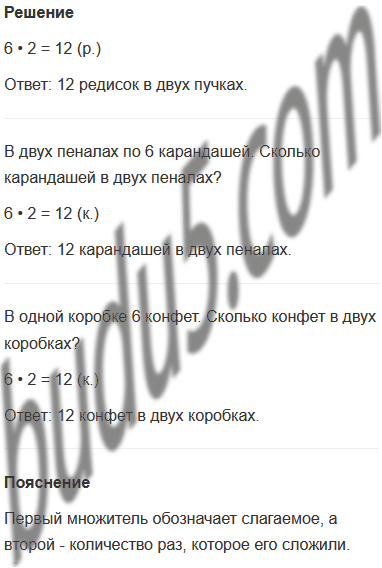 "В одном пучке 6 редисок. Сколько редисок в двух пучках?"