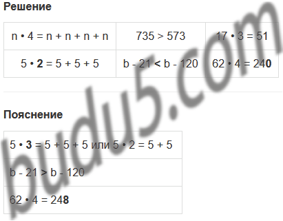 | 5 • 2 = 5 + 5 + 5 | b - 21 < b - 120 | 62 • 4 = 240 |
