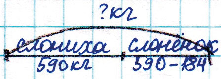 11. Составь выражение и найди его значение при а = 590, b = 184: "Масса слонихи а кг, а слонёнка - на b кг меньше. Чему равна масса слонихи со слонёнком?