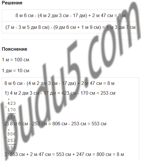 | 8 м 6 см - (4 м 2 дм 3 см - 17 дм) + 2 м 47 см |