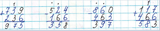 Вычитаю сотни. 3 + 1 = 4, да ещё 1 сот., которую взяли при вычитании десятков. 4 + 1 = 5.