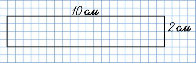 8. Построй в тетради прямоугольник со сторонами 10 см и 2 см. Найди его периметр и площадь.