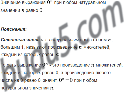 Чему равно значение выражения 0n при любом натуральном значении ?