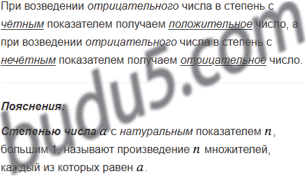 Каким числом, положительным или отрицательным, является значение степени отрицательного числа, если показатель степени является чётным числом? нечётным числом?