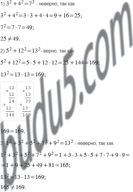 3) 12 + 32 + 52 +72 + 92 = 132;