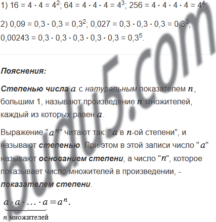 1) числа 16; 64; 256 в виде степени с основанием 4;