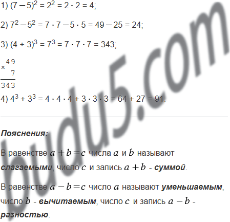 3) куб суммы чисел 4 и 3;