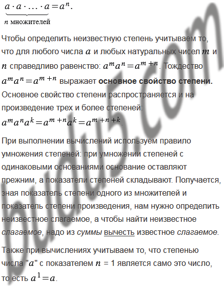 Представьте выражение в виде произведения двух степеней с основаниями , одна из которых равна: