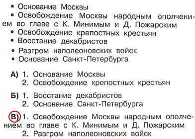 В) 1. Освобождение Москвы народным ополчением во главе с К. Мининым и Д. Пожарским