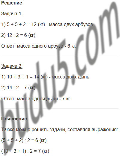 Задание № 10. Узнай по рисункам массу одного арбуза и массу одной дыни.