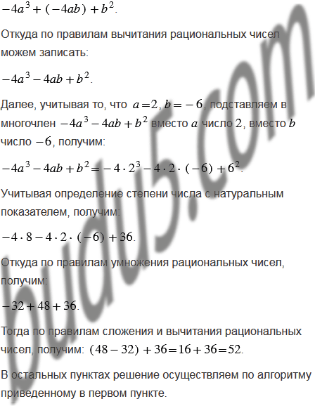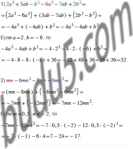 Приведите подобные члены и найдите значение многочлена при указанных значениях переменных:
