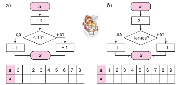 Сначала умножаем на 3 вводимое число, затем проверяем меньше ли 16 полученный результат. Если ответ положительный, умножаем ответ на 1. Если ответ отрицательный, вычитаем из числа 1. Ответ записываем в таблицу.